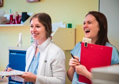 • velkou výhodou oproti velkým nemocnicím je malý počet nastupujících kolegyň a kolegů na jednotlivá oddělení, a tedy téměř okamžité osobní zapojení do léčebného procesu pod dozorem starších kolegů
